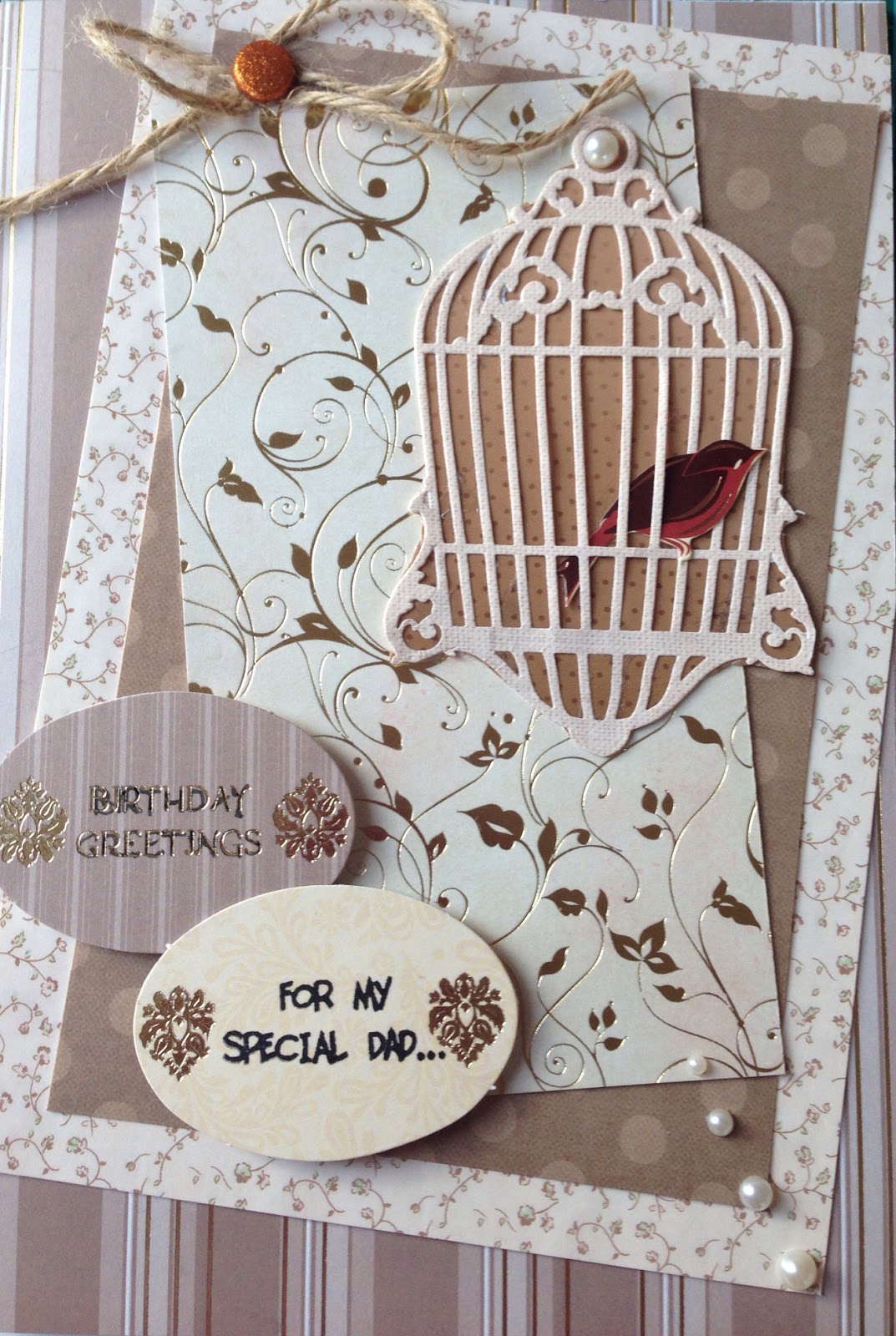So this card I have made for my dad’s birthday, he loves his cockatoo so I added a bird to the cage.