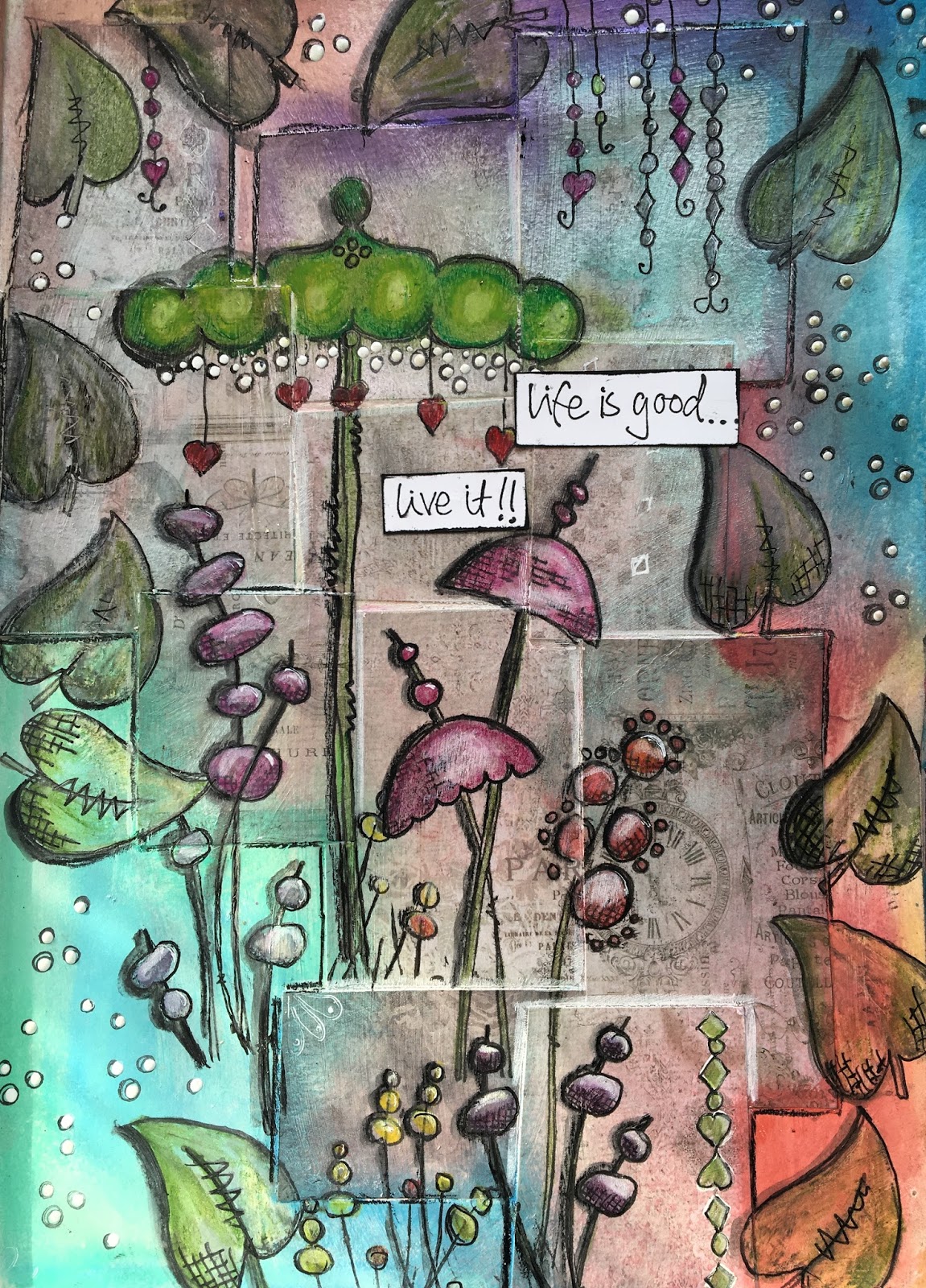 Hello everyone, I have another journal page to share using JOFY 45-46 which is her new release for Paper Artsy. I’ve taken them down a different route this time. I do hope you I’ve it. I’m also going to enter it into the challenge at Paper Artsy whoes them is Beads Charms and Dangles.