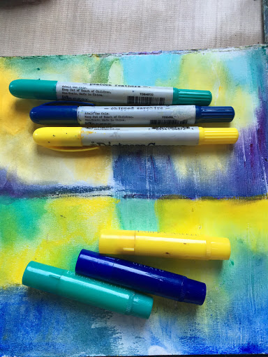 The lefthand side had the Gesso and the right hand nothing. I applied the Crayons on both sides, and as you can see both sets were easily blended, although I think they both went on better over the Gesso. They both were smooth and blended easily, whereas on the non Gesso side although they still blended it was harder to get wax to move.
