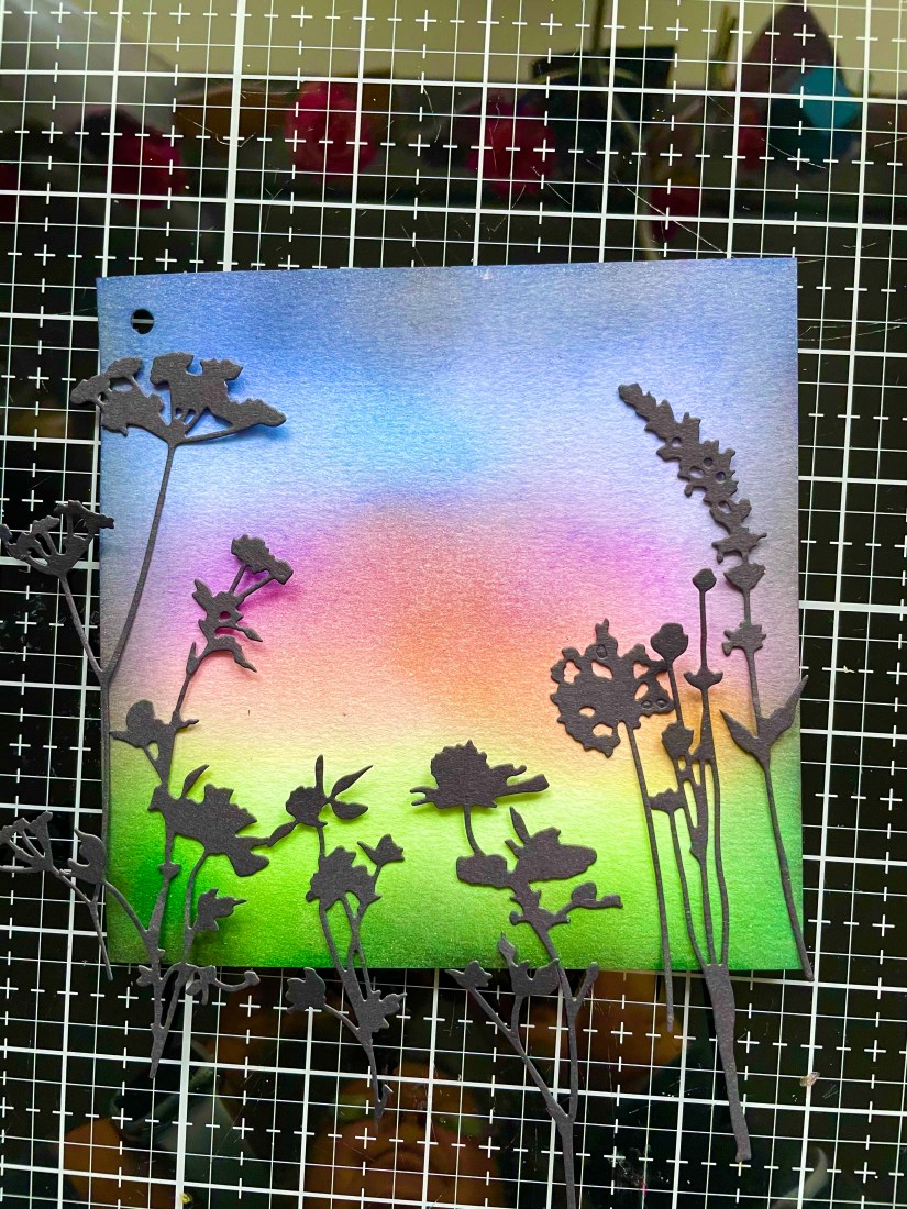 Next I die cut some florals from Sizzix in black card stock, to create the silhouette effect.