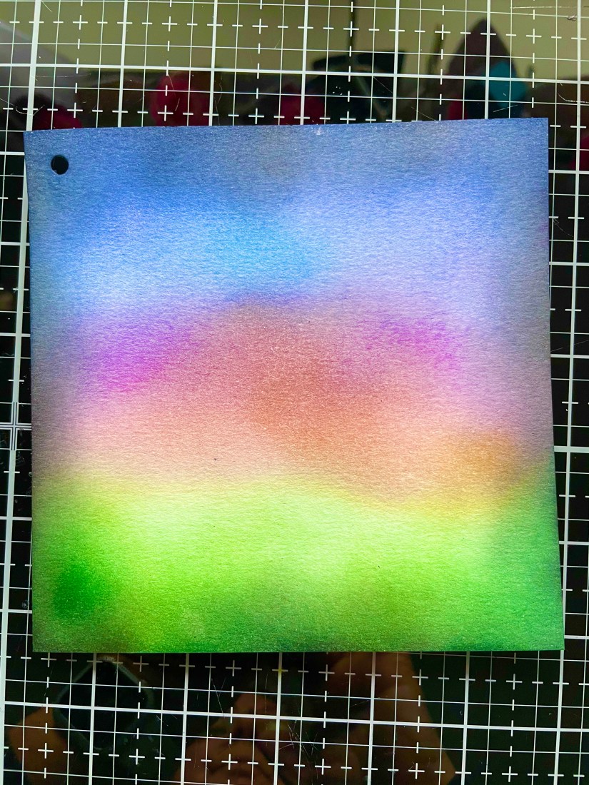 I created myself a 6”x6” journal that I can add to when I want and this is the first page. So to start I created my background using Distress ink from Ranger and blended the colours together.
