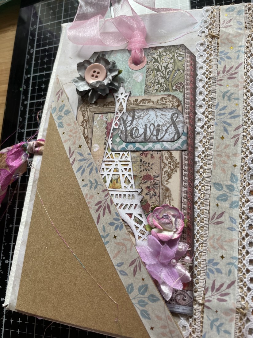you can see below that I used a mix of tickets, adverts flowers birds and writing all with a vintage feel.once everything was stuck down and dry I added ink in places to add interest.