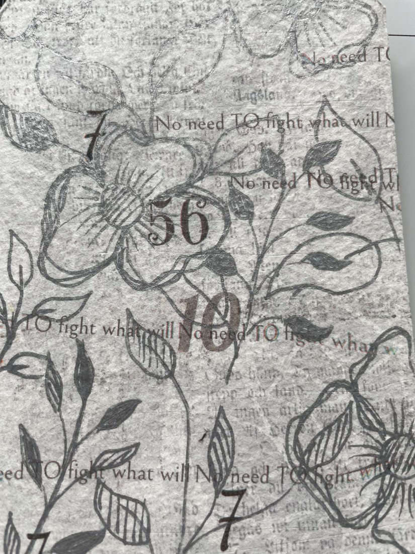 Next I dried this before doing some doodles with a grey acrylograph pen from Archer and Olive.