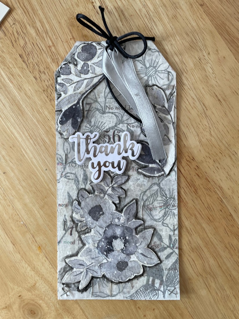 I finished the tag by added some grey ribbon. Let’s take a last look.