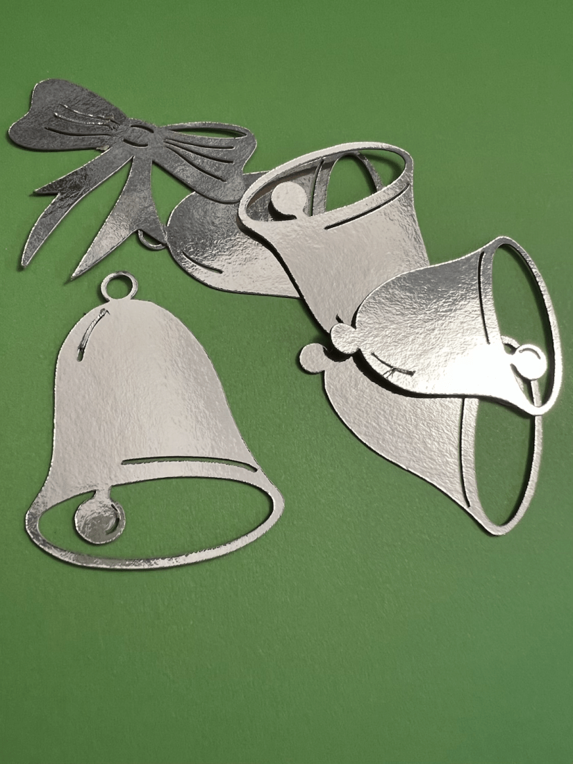 I decided on what colours foil card I wanted to use for the bells, and bow and then plain card for the holly and berries.