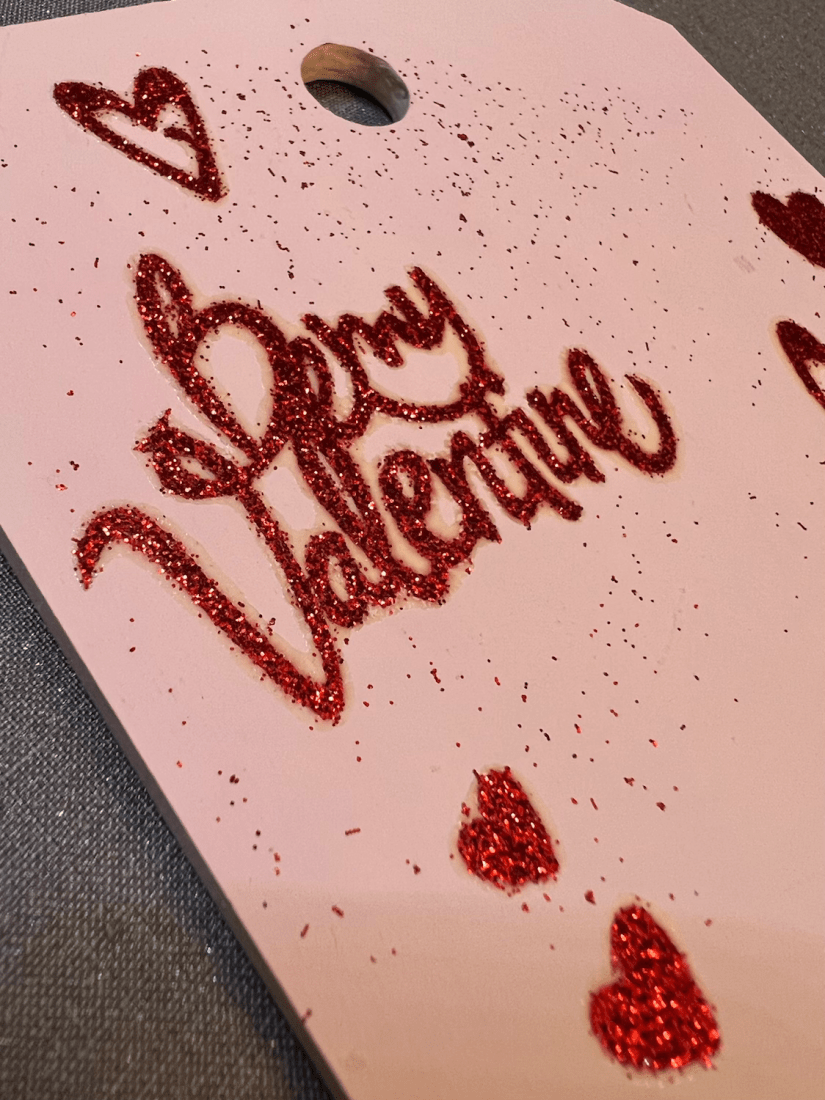 I grouped my sentiment and hearts so that they cut as 1 image removed the tag image and pressed the make it button. I set up the cut with the type of material I was using which was iron glitter and added my vinyl to the mat, feeding it into the machine.
