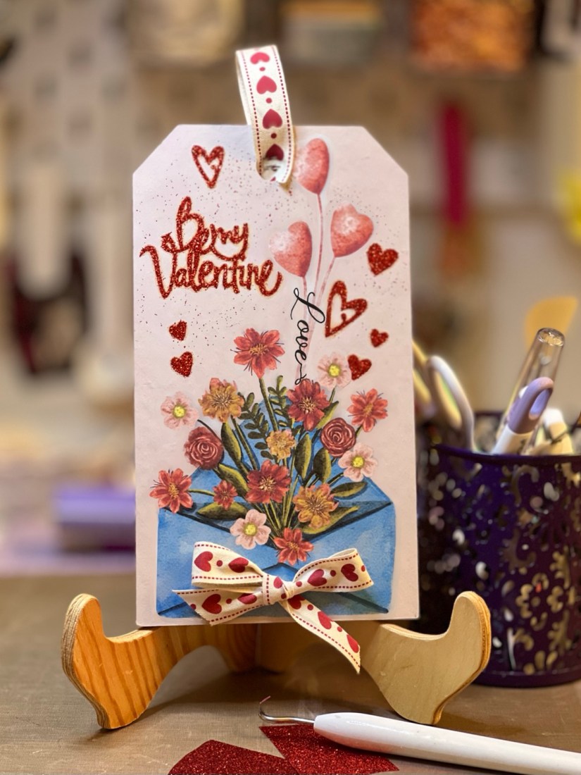 As my title states Hearts and Flowers is this months theme for Country View Crafts, challenge which you can find here and I’ve made a large wooden tag to add to a bundle I’m making to celebrate Valentine’s Day with my husband.