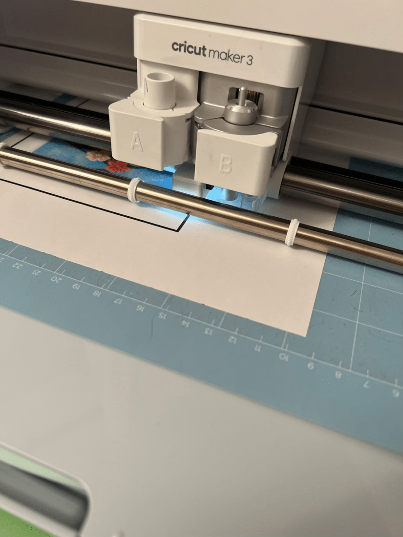 Once printed I laid it onto the cutting mat to allow the maker to cut it out.