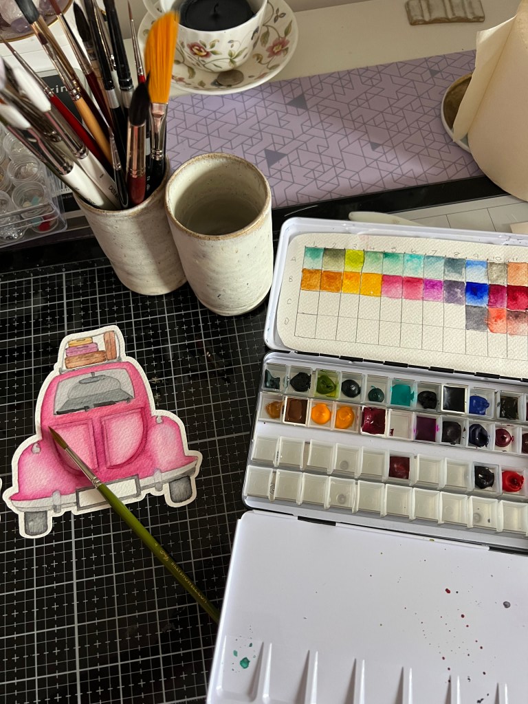 Next I uploaded the image to Cricut design space, where I got It to draw and cut it out onto watercolour paper. I love This feature as it allows you paint any image you have created and cut it out, combining my two loves of traditional and digital.