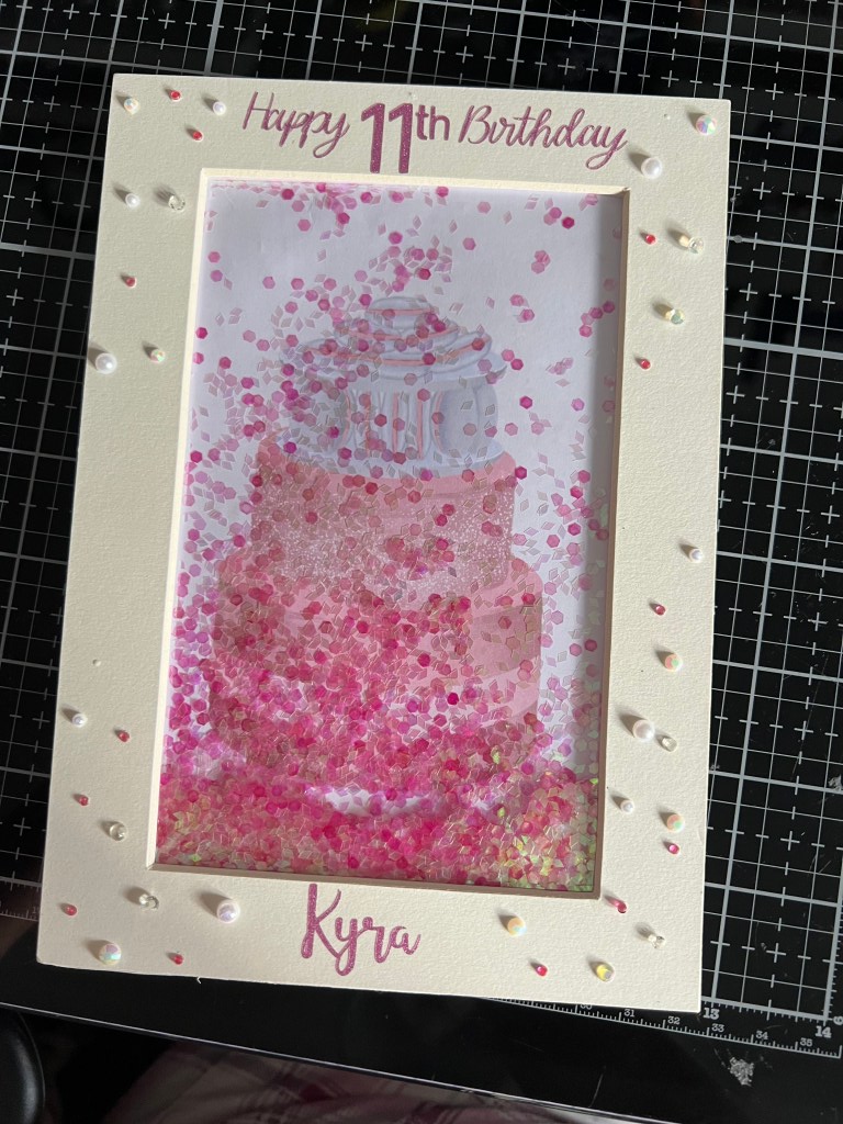 Hello everyone, its my second post for this month for Country View Crafts and I have a shaker birthday card for you. I was really stuck this year for a card for my granddaughter, she is at such an awkward age, you 11 going 30 type of thing lol. anyway I settled on a shaker card for two reasons, 1 she’s never had one before and 2 I’ve never successfully made one before. so here it is.