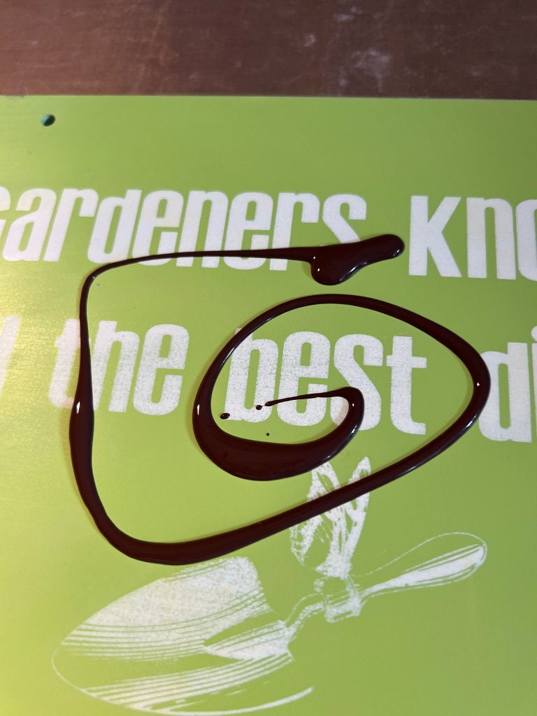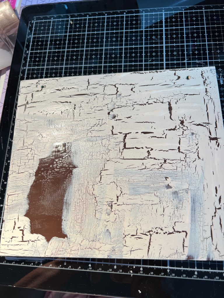 So this was an old board I purchased which I rubbed down and then gave two coats of brown acrylic. Then a coat of weathered wood and once dry I gave It a coat of cream acrylic then let it all do its magic.