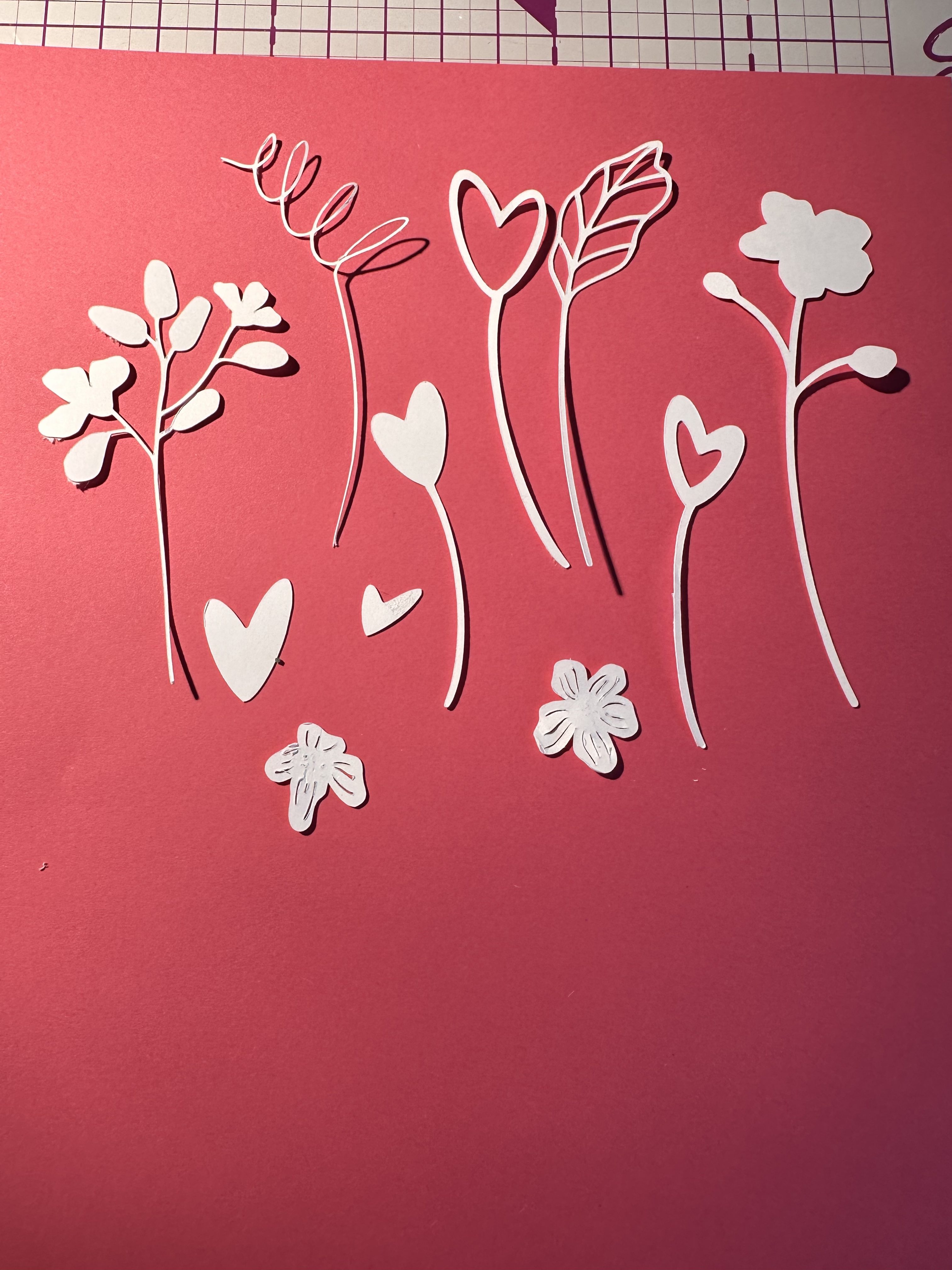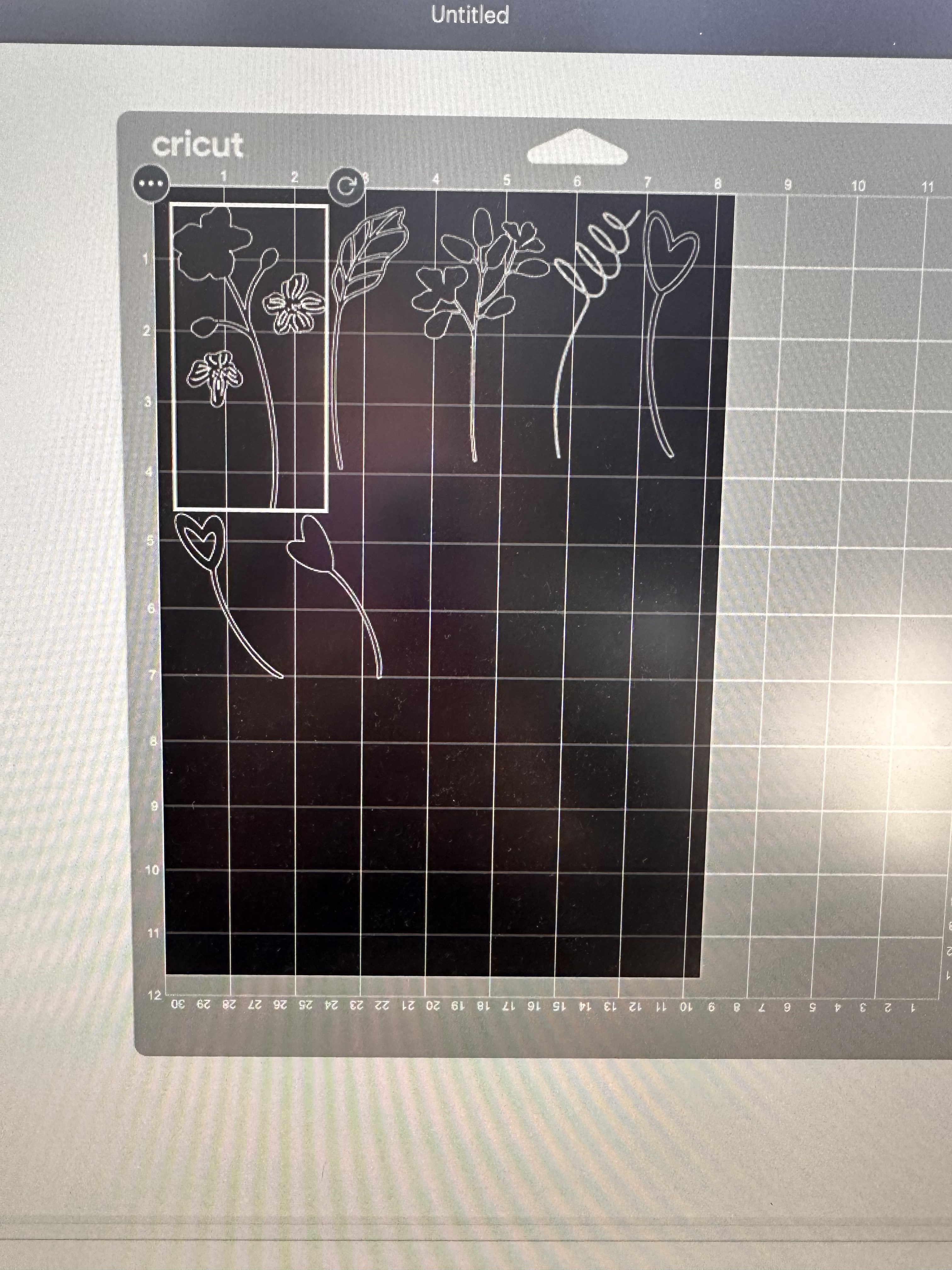 I imported these into Design Space, I also had few others I had created which I wanted to add which were already uploaded. So I added them all to my canvas and resized them to fit my card which overall size is 7”x5”.