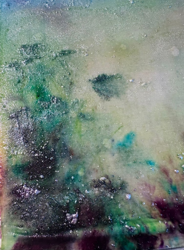 By now it was absolutely dripping so i laid the second piece of fabric I had cut on top to absorb some of the water and paint.
