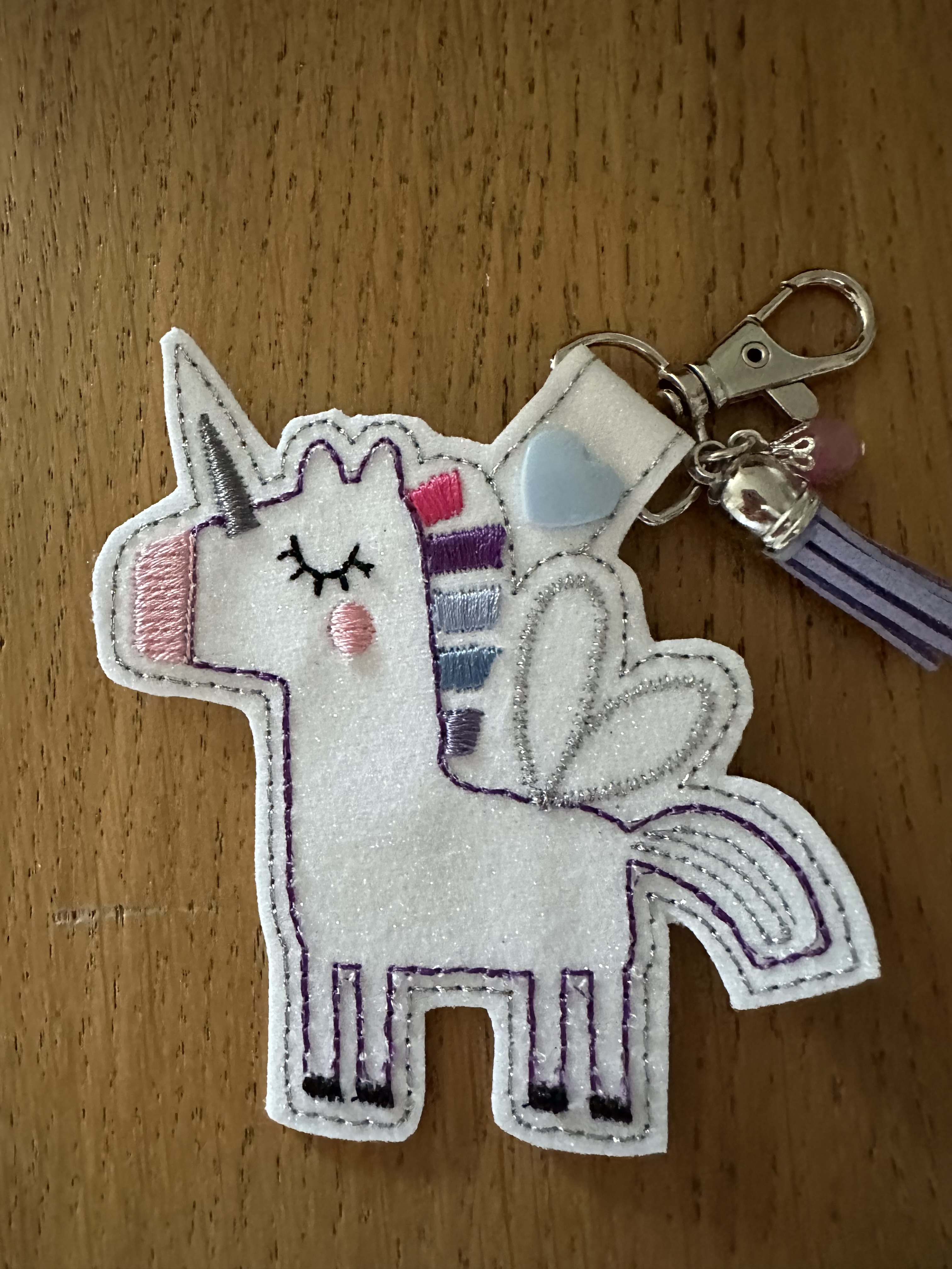 I chose this keyring as I loved the design, I thought it was so cute. I used my embroidery machine and this was completed in the hoop. I chose an embroidery vinyl for the base and threaded the different colours as needed. I forgot to take process shots as I was in the zone with this project.